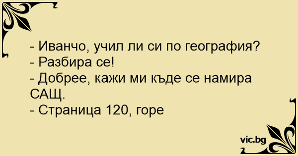 • Вицове от Facebook от нашата страница https://www.facebook.com/www.vic.bg