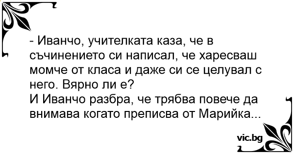 И Иванчо разбра, че трябва повече да внимава когато преписва от Марийка...