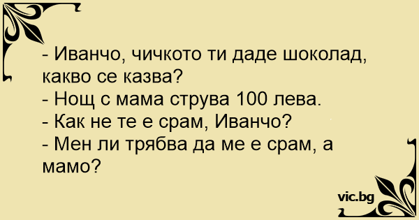 • Вицове от Facebook от нашата страница https://www.facebook.com/www.vic.bg
