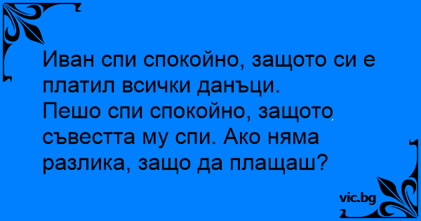 Иван спи спокойно, защото си е платил всички данъци.