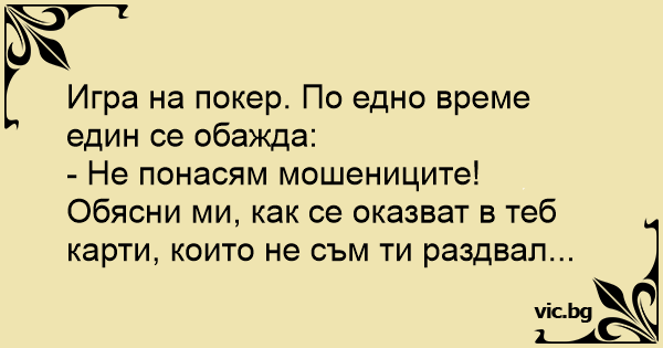 - Не понасям мошениците! Обясни ми, как се оказват в теб карти, които не съм ти раздвал...
