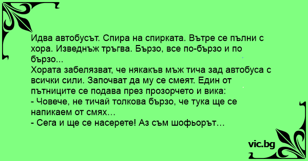 • Вицове от Facebook от нашата страница https://www.facebook.com/www.vic.bg