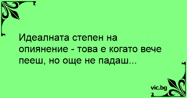 Идеалната степен на опиянение - това е когато вече пееш, но още не падаш...