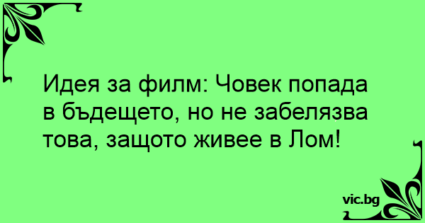 Идея за филм: Човек попада в бъдещето, но не забелязва това, защото живее в Лом!