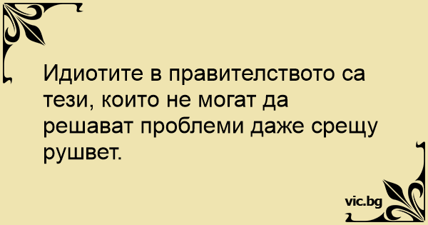 Идиотите в правителството са тези, които не могат да решават проблеми даже срещу рушвет.