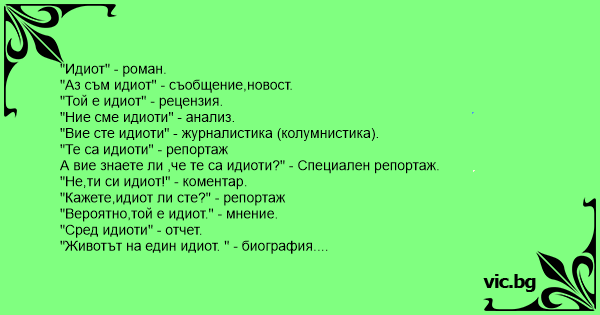 • Вицове от Facebook от нашата страница https://www.facebook.com/www.vic.bg