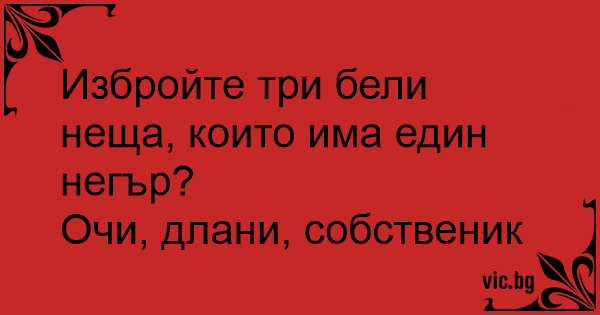 Nævn 3 hvide ting på en neger: – Øjne, Tænder og Ejer.