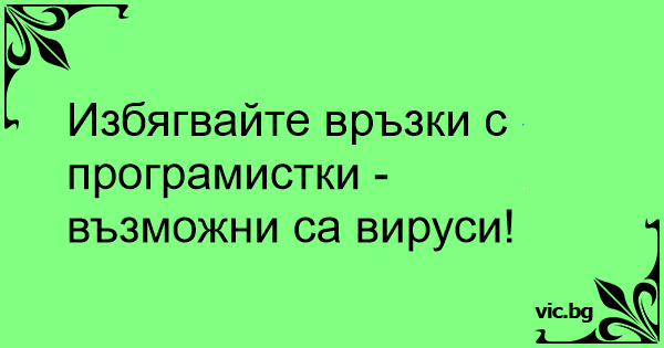 Избягвайте връзки с програмистки - възможни са вируси!