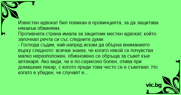 Известен адвокат бил повикан в провинцията, за да защитава някакъв обвиняем.