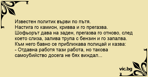 Върви си политик по пътя и в тоя момент го блъска самосвал...