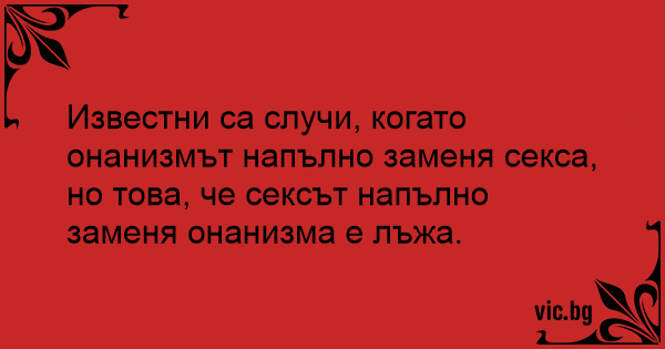Известни са случи, когато онанизмът напълно заменя cekca, но това, че cekcъt напълно заменя онанизма е лъжа.