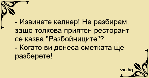 - Извинете келнер! Не разбирам, защо толкова приятен ресторант се казва "Разбойниците"?