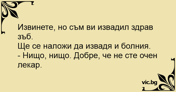 - Нищо, нищо. Добре, че не сте очен лекар.