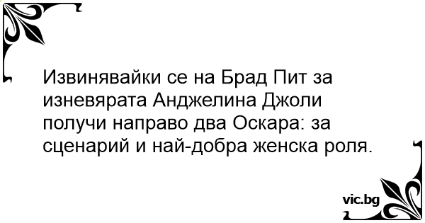 Извинявайки се на Брад Пит за изневярата Анджелина Джоли получи направо два Оскара: за сценарий и най-добра женска роля.