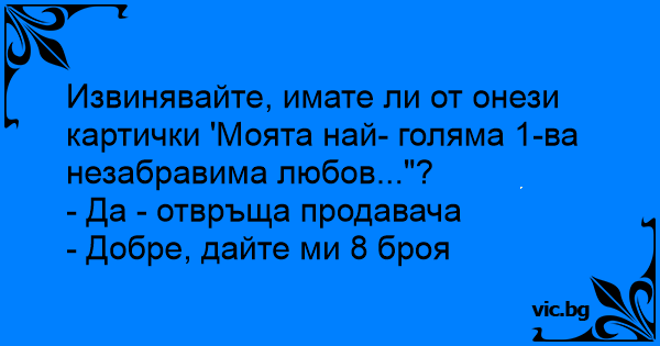 • Вицове от Facebook от нашата страница https://www.facebook.com/www.vic.bg