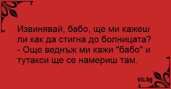 Извинявай, бабо, ще ми кажеш ли как да стигна до болницата?