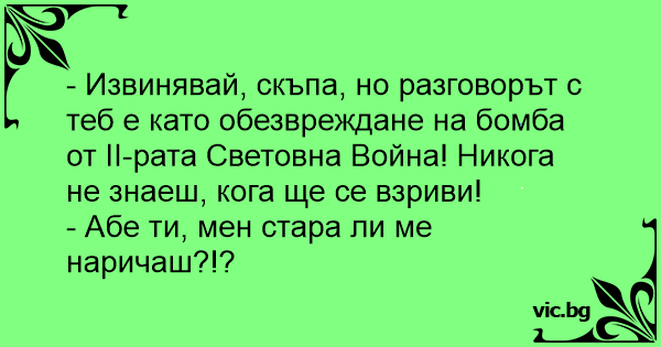- Извинявай, скъпа, но разговорът с теб е като обезвреждане на бомба от II-рата Световна Война! Никога не знаеш, кога ще се взриви!