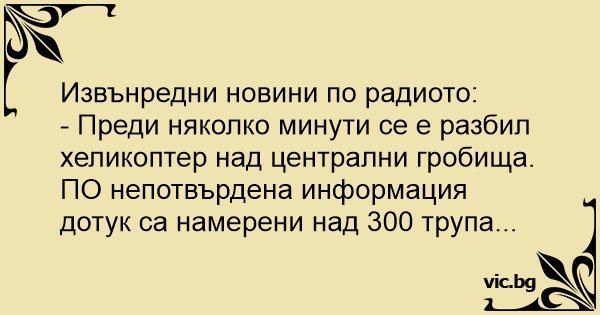 - Преди няколко минути се е разбил хеликоптер над централни гробища. ПО непотвърдена информация дотук са намерени над 300 трупа...