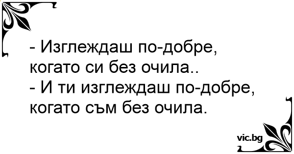 - И ти изглеждаш по-добре, когато съм без очила.