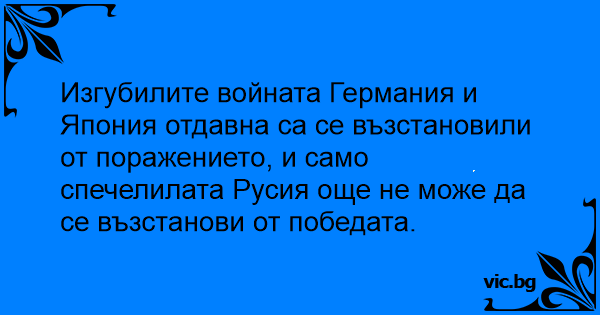 Изгубилите войната Германия и Япония отдавна са се възстановили от поражението, и само спечелилата Русия още не може да се възстанови от победата.
