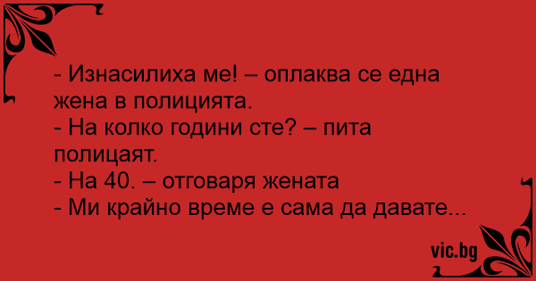 - Изнасилиха ме! – оплаква се една жена в полицията.