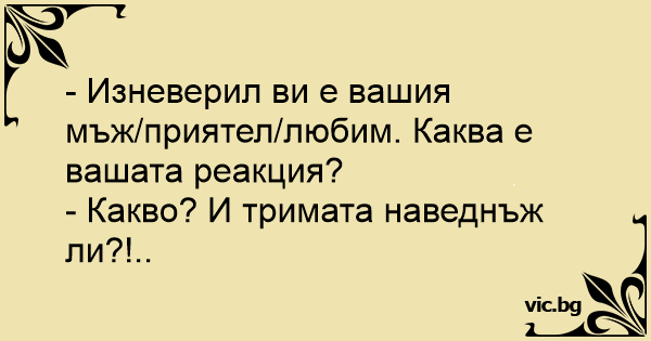 - Изневерил ви е вашия мъж/приятел/любим. Каква е вашата реакция?