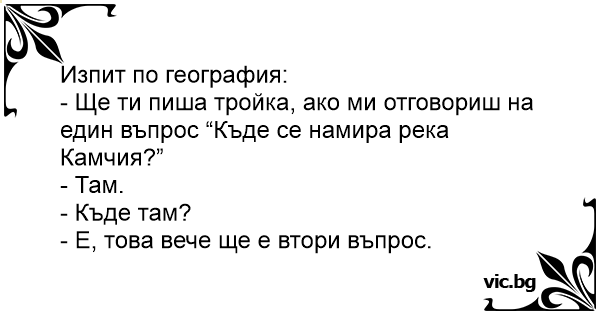 - Ще ти пиша тройка, ако ми отговориш на един въпрос “Къде се намира река Камчия?”