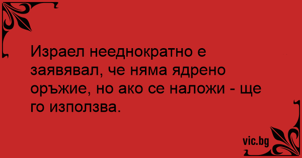 Израел нееднократно е заявявал, че няма ядрено оръжие, но ако се наложи - ще го използва.