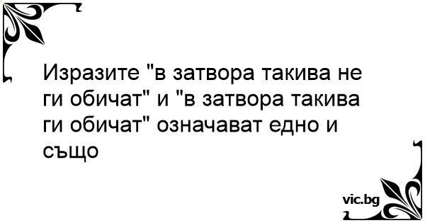 Изразите "в затвора такива не ги обичат" и "в затвора такива ги обичат" означават едно и също