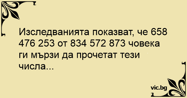 Изследванията показват, че 658 476 253 от 834 572 873 човека ги мързи да прочетат тези числа...