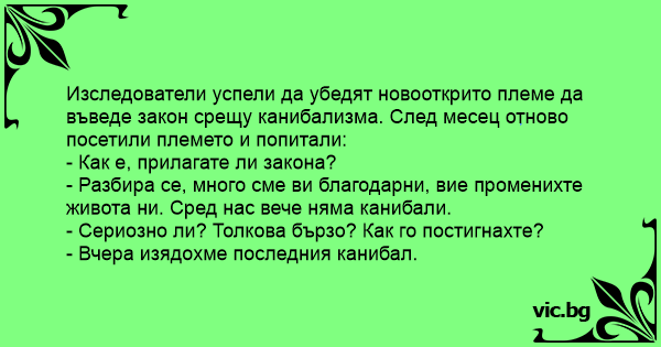 - Вчера изядохме последния канибал.