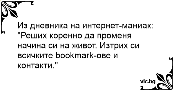 "Реших коренно да променя начина си на живот. Изтрих си всичките bookmark-ове и контакти."