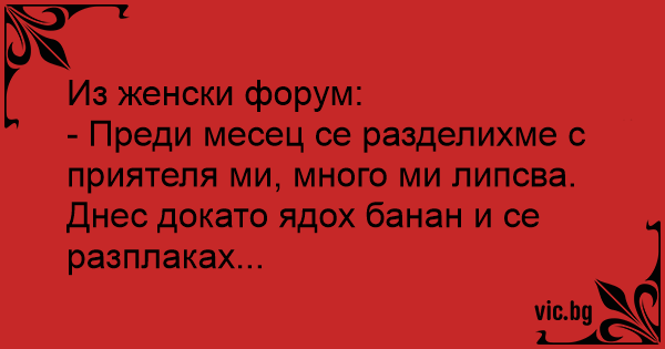 - Преди месец се разделихме с приятеля ми, много ми липсва. Днес докато ядох банан и се разплаках...