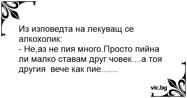 - Не,аз не пия много.Просто пийна ли малко ставам друг човек....а тоя другия вече как пие.......