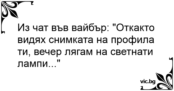 Из чат във вайбър: "Откакто видях снимката на профила ти, вечер лягам на светнати лампи..."