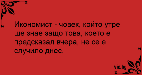 Икономист - човек, който утре ще знае защо това, което е предсказал вчера, не се е случило днес.