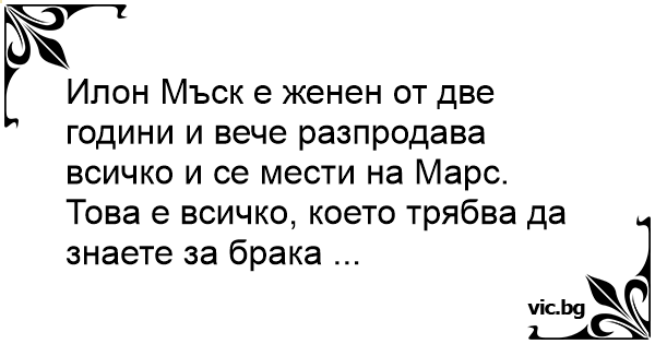 Илон Мъск е женен от две години и вече разпродава всичко и се мести на Марс.