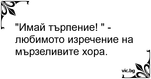 "Имай търпение! " - любимото изречение на мързеливите хора.