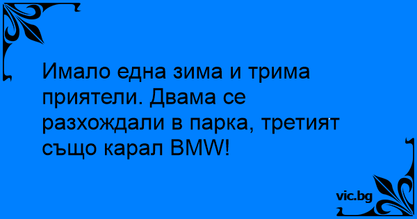 Имало една зима и трима приятели. Двама се разхождали в парка, третият също карал BMW!