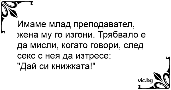 Имаме млад преподавател, жена му го изгони. Трябвало е да мисли, когато говори, след cekc с нея да изтресе: