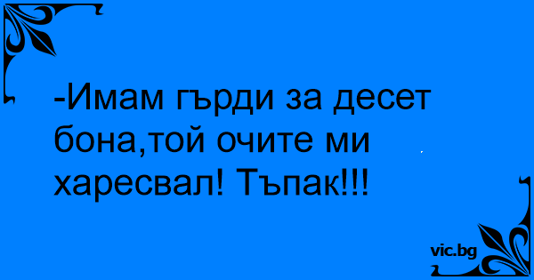 -Имам гърди за десет бона,той очите ми харесвал! Тъпак!!!