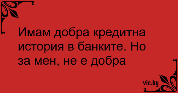 Имам добра кредитна история в банките. Но за мен, не е добра