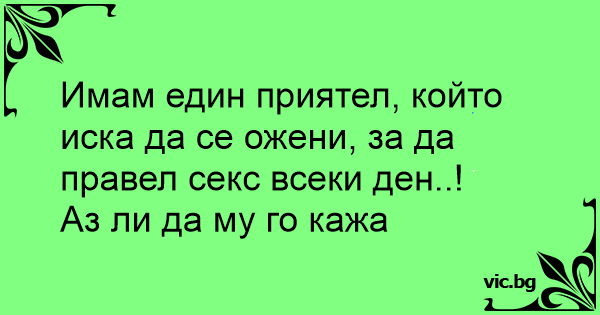 Имам един приятел, който иска да се ожени, за да правел cekc всеки ден..!