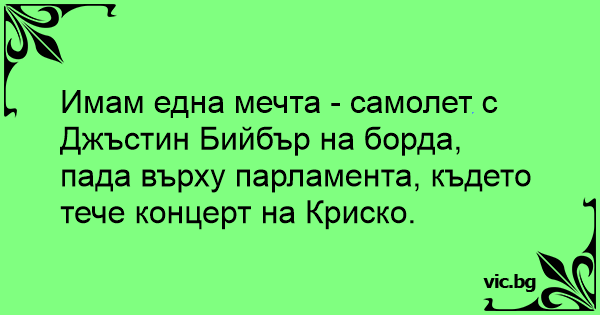 Имам една мечта - самолет с Джъстин Бийбър на борда, пада върху парламента, където тече концерт на Криско.