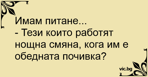 - Тези които работят нощна смяна, кога им е обедната почивка?