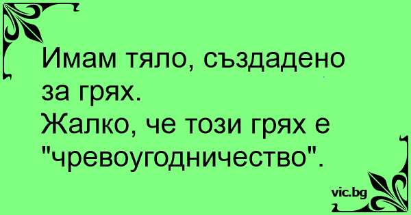 Жалко, че този грях е "чревоугодничество".