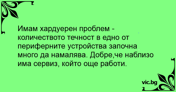 Имам хардуерен проблем - количеството течност в едно от периферните устройства започна много да намалява. Добре,че наблизо има сервиз, който още работи.
