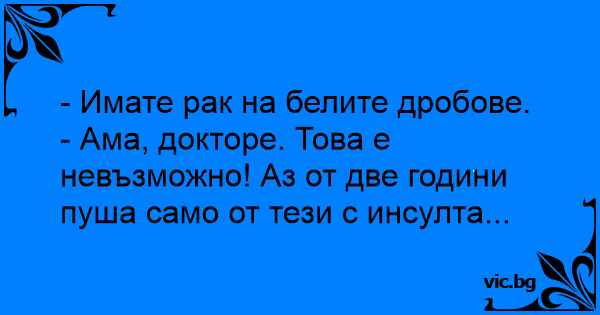- Ама, докторе. Това е невъзможно! Аз от две години пуша само от тези с инсулта...
