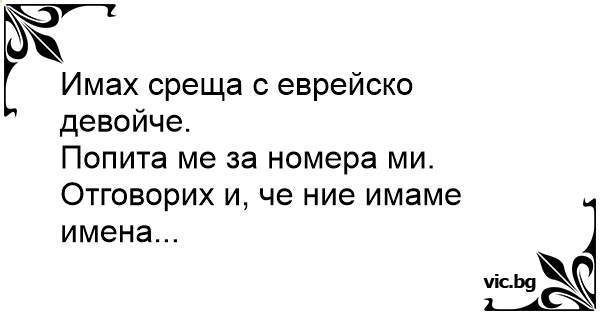 Излизах с еврейка на среща и тя ме попита за номера ми. Аз и казах че ние имаме имена ...