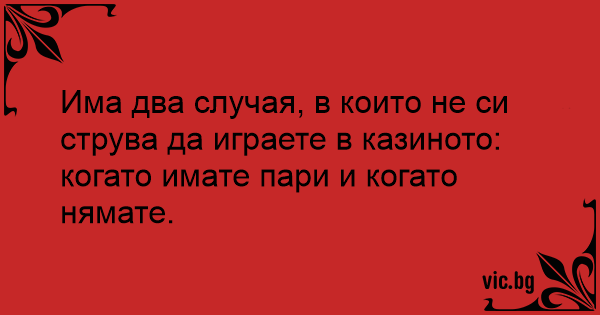 Има два случая, в които не си струва да играете в казиното: когато имате пари и когато нямате.